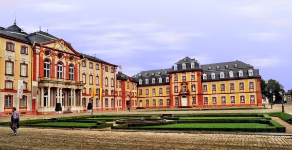1. Das farbenprächtige Hauptgebäude des Barockschlosses Bruchsal