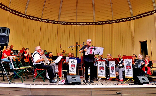 Das 1. Orchester des HHC sowie das Mundharmonika-Orchester "SILVER-HARPS" unter der Leitung von Walter Krebs unterhält Sie mit mit bekannten und beliebten Melodien aus aller Welt. Eintritt frei | |